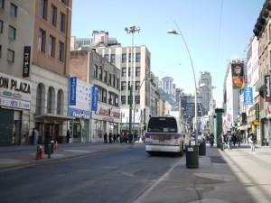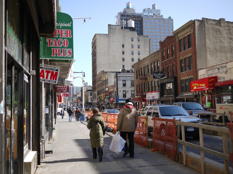 もう一方のエントランスを出ると、すぐにFulton Streetの商店街にぶつかります。日曜の朝早くだったので、人もまばらですが、午後にもなると大勢の買い物客でにぎわいそうです。